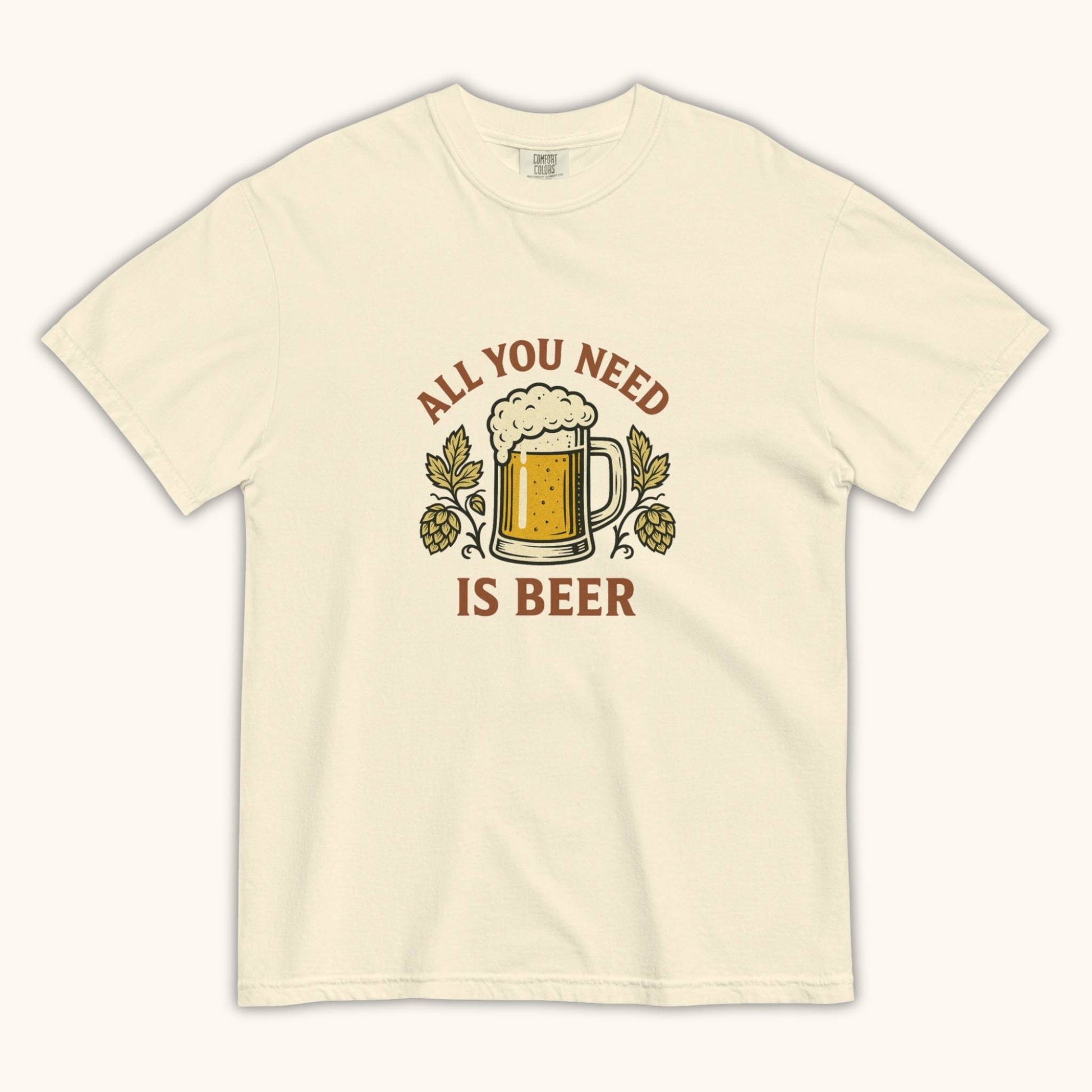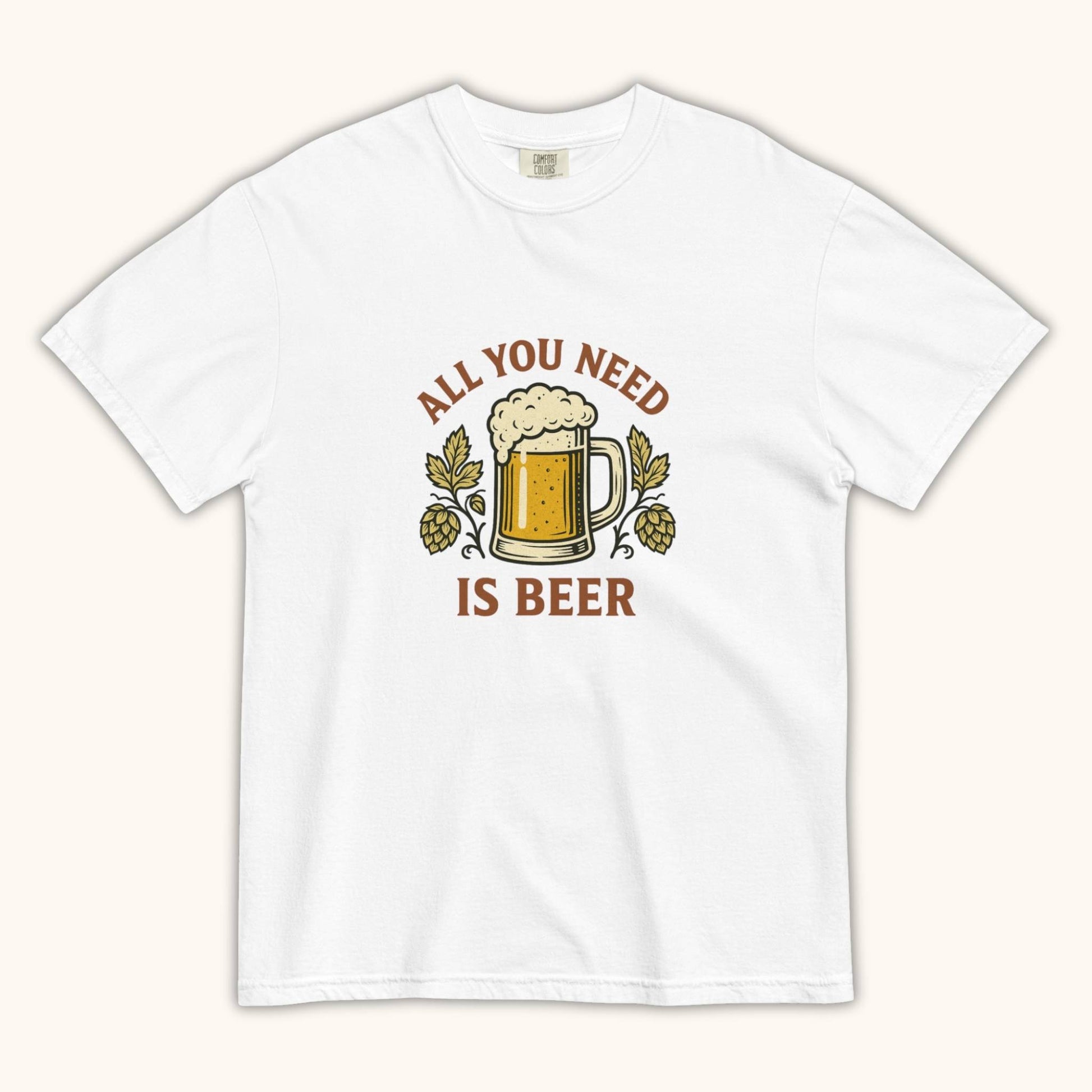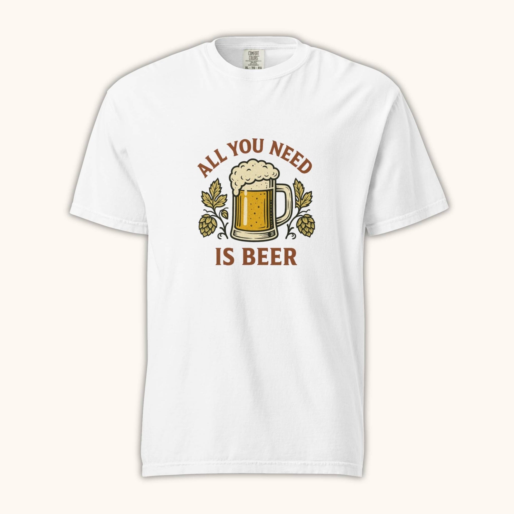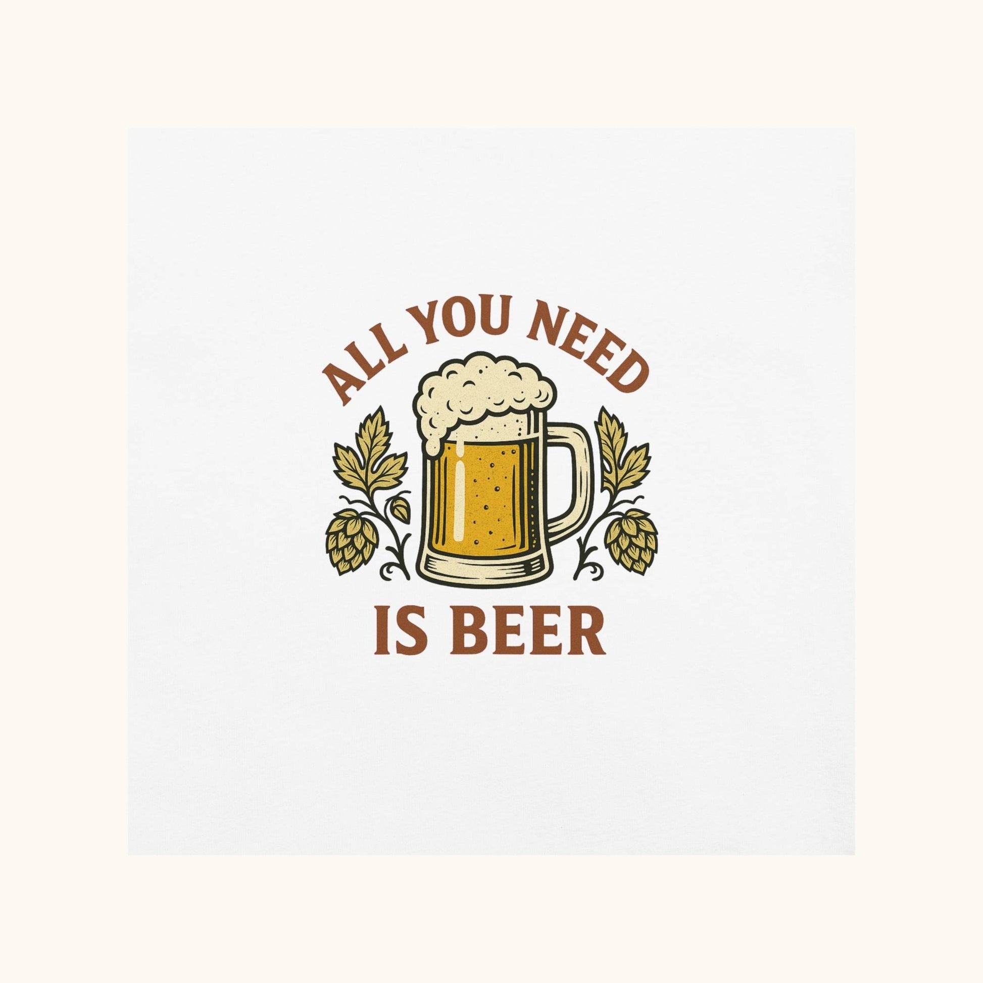 For true beer lovers, this “All You Need Is Beer” unisex t-shirt says it all. With a vintage-style beer mug and hop illustrations, this tee combines humor, good vibes, and classic pub charm.