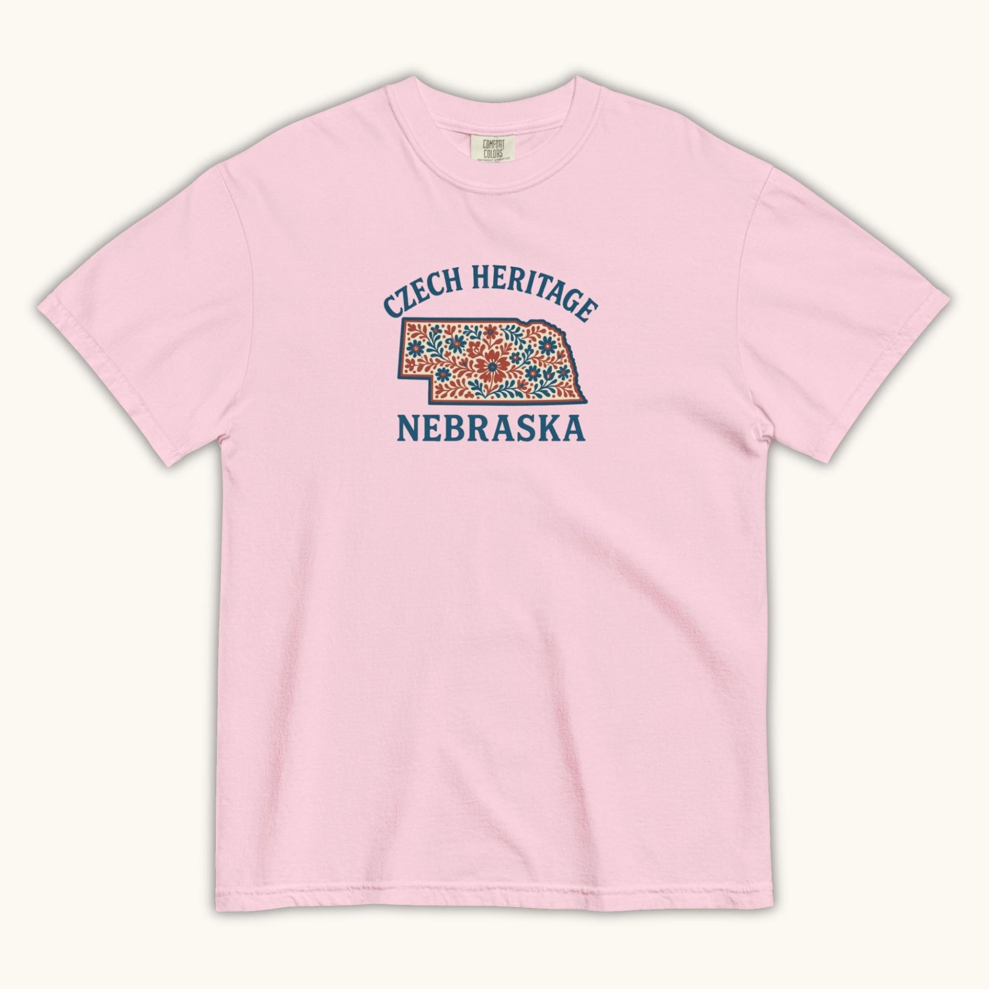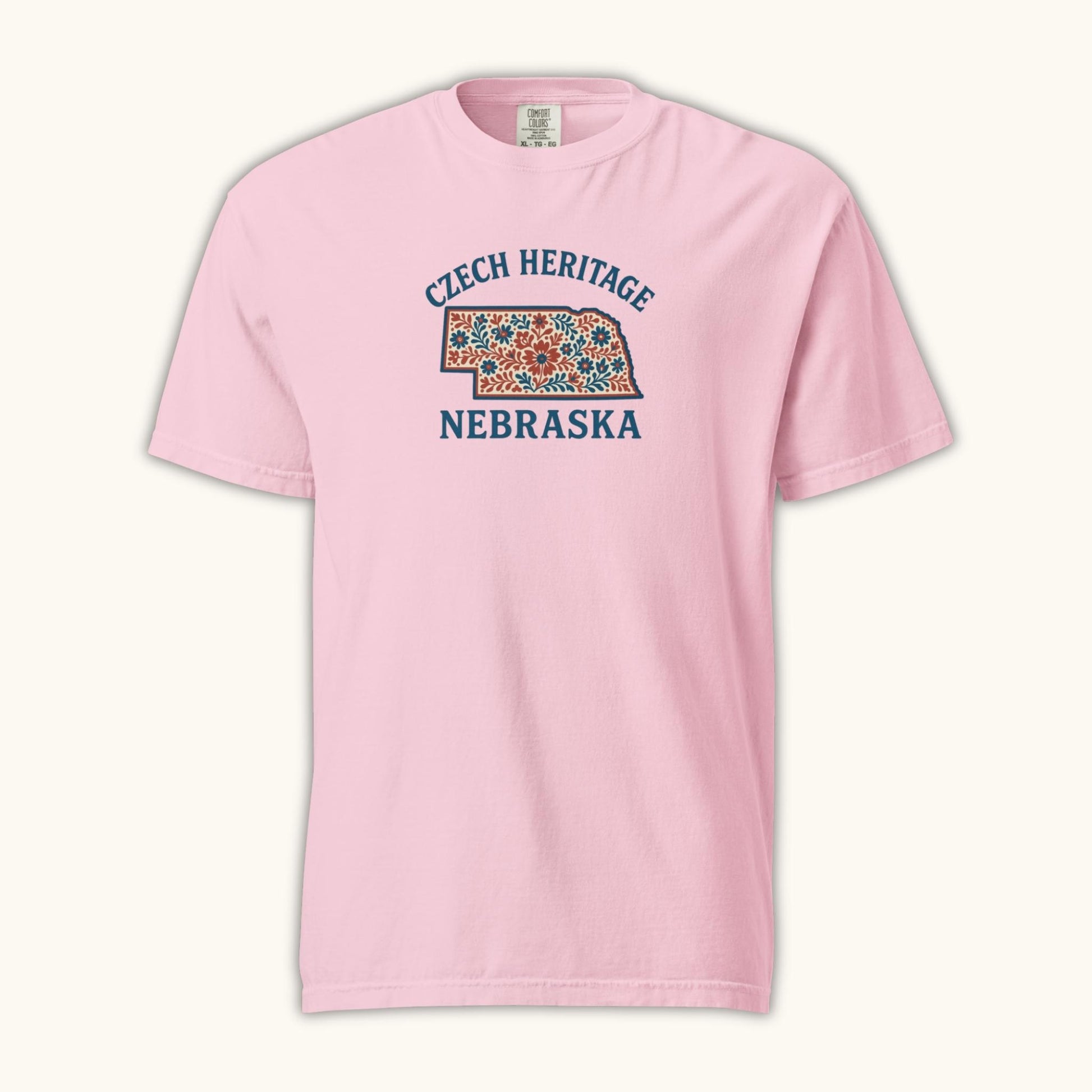 Celebrate your Czech roots in the heart of America with this “Czech Heritage Nebraska” unisex t-shirt. Featuring the outline of Nebraska filled with a traditional Czech folkloric floral pattern, this design beautifully blends culture, pride, and Midwestern identity.