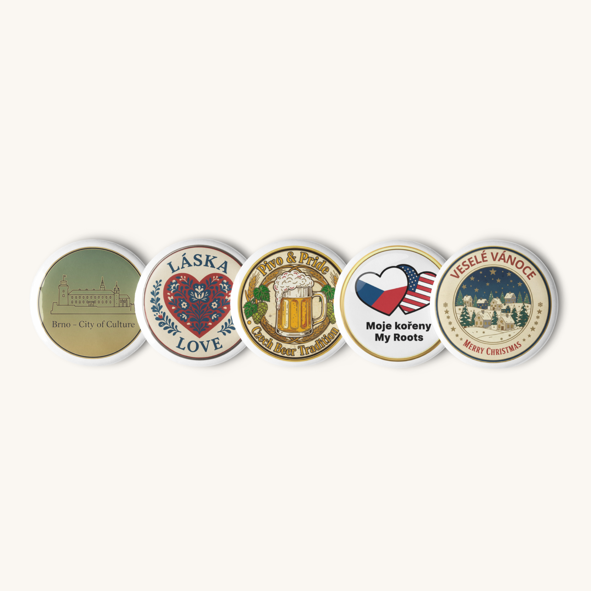 Celebrate Czech heritage with this exclusive 5-pin set inspired by the most beloved Czech icons. Each pin brings a unique symbol of Czech culture from historic landmarks to traditional motifs. Lightweight, durable, and glossy, these pins add authentic Czech charm to jackets, backpacks, hats, and accessories.