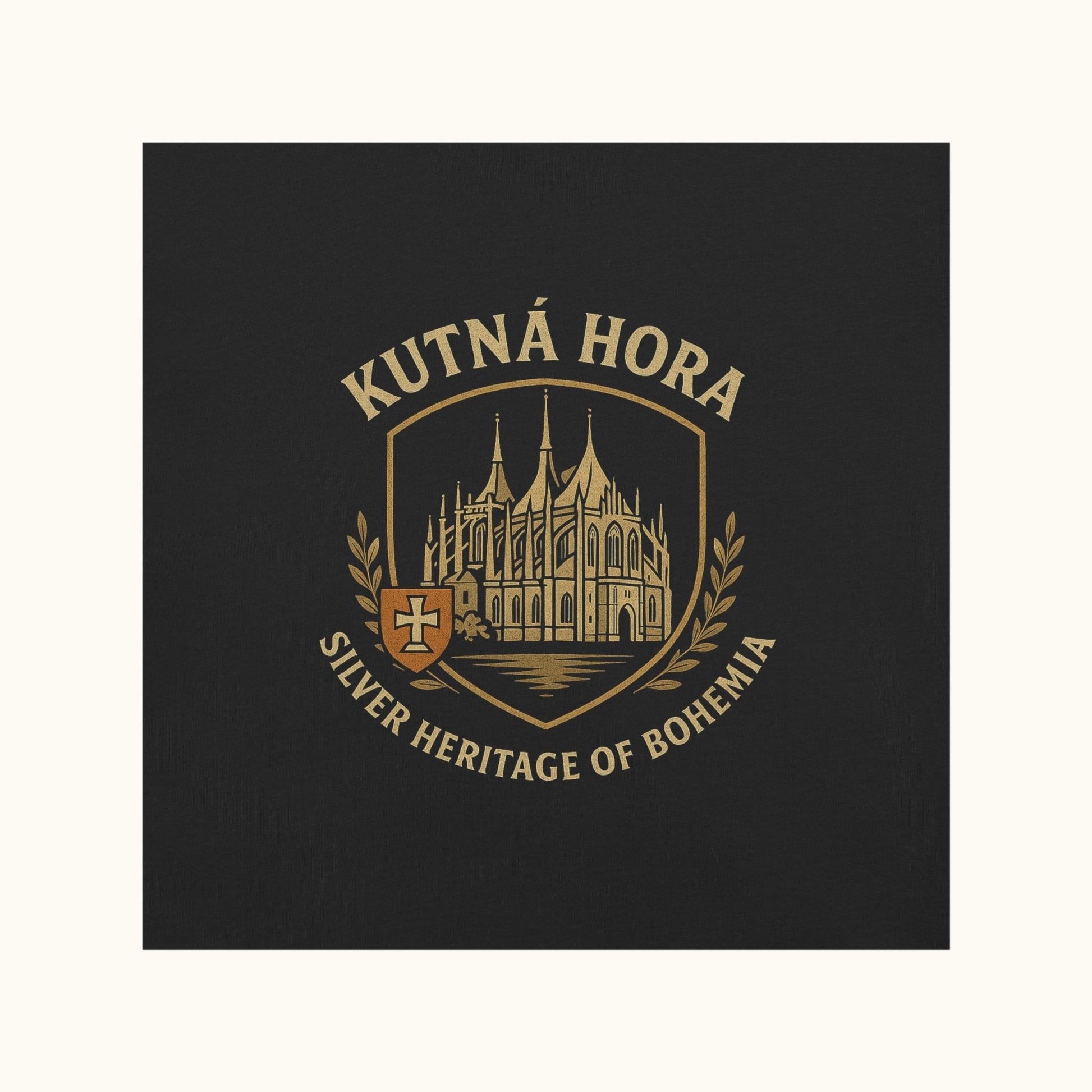 Celebrate one of Bohemia’s most historic and culturally rich cities with the “Kutná Hora – Silver Heritage of Bohemia” unisex t-shirt. Featuring an elegant illustration of the iconic Saint Barbara’s Cathedral framed by laurel branches and a heraldic emblem, this design pays tribute to the city’s medieval silver-mining legacy and its role as a major center of Czech history.