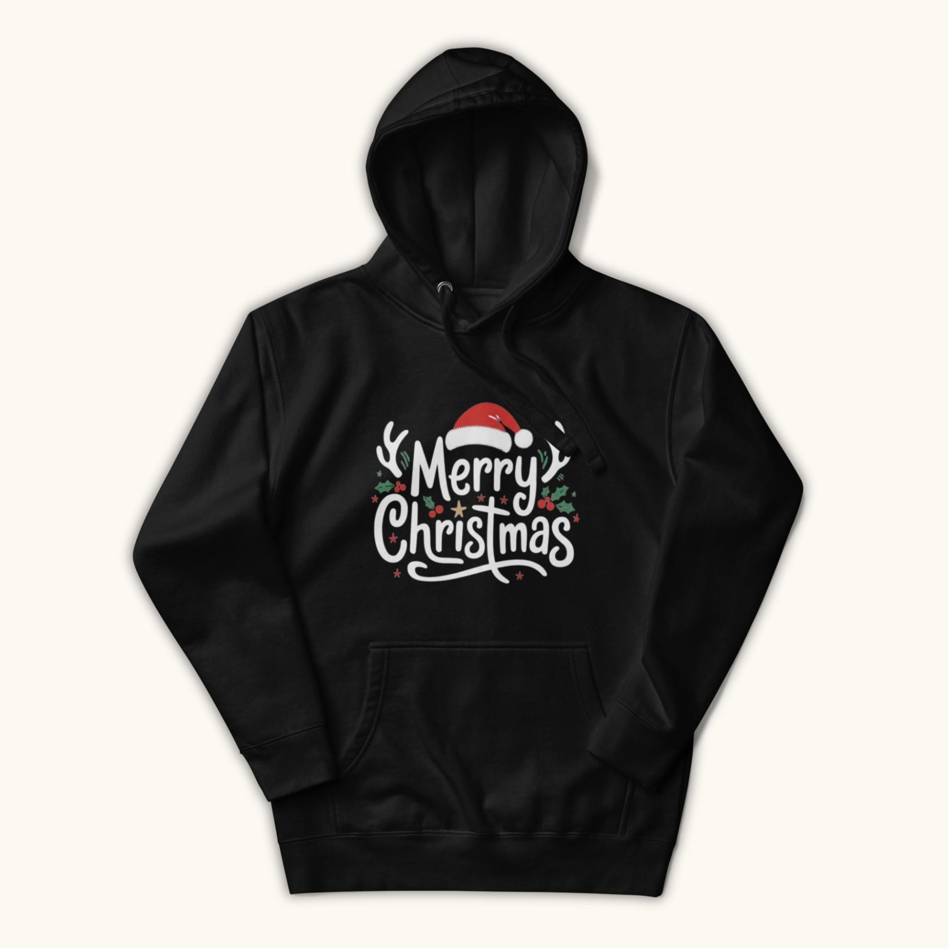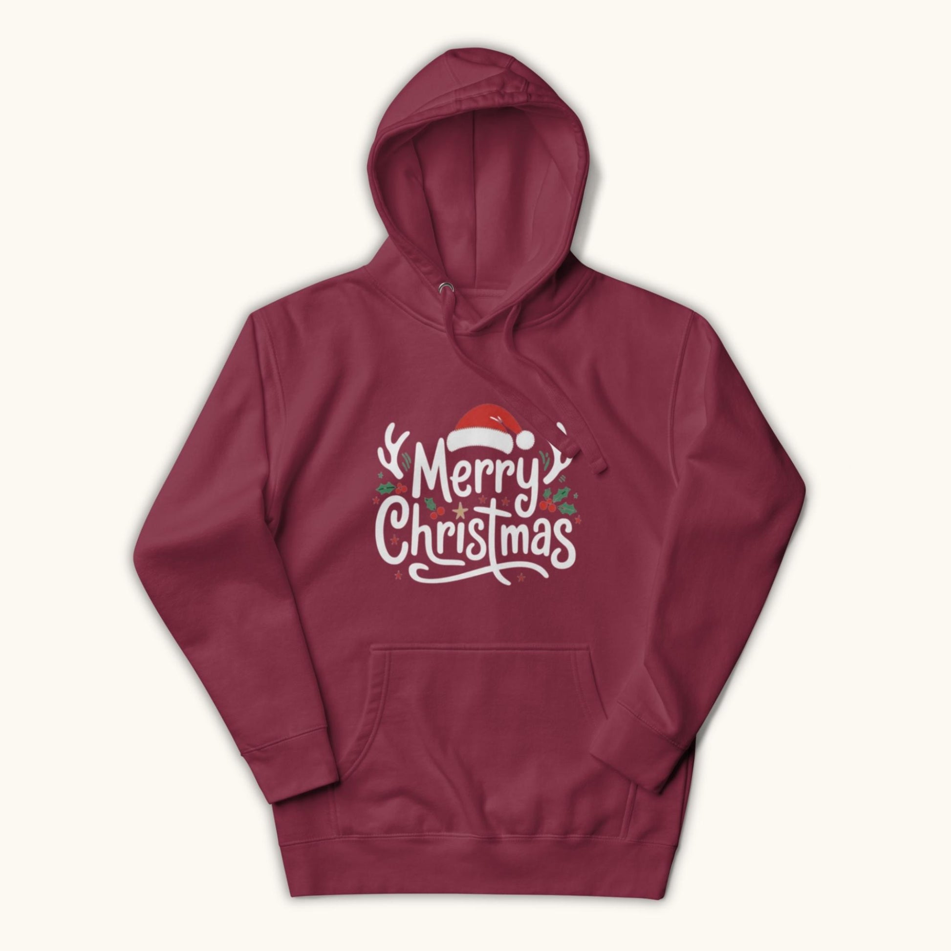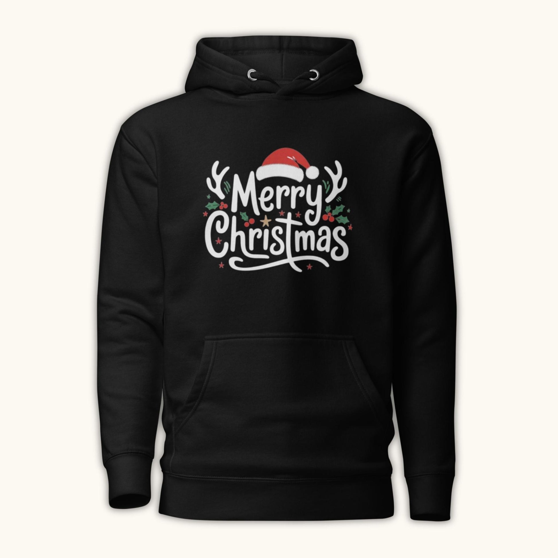 Celebrate the holiday season with this cheerful unisex “Merry Christmas” hoodie. Featuring a festive design with a Santa hat, antlers, holly leaves, and playful lettering, this hoodie brings warm Christmas vibes wherever you go.
