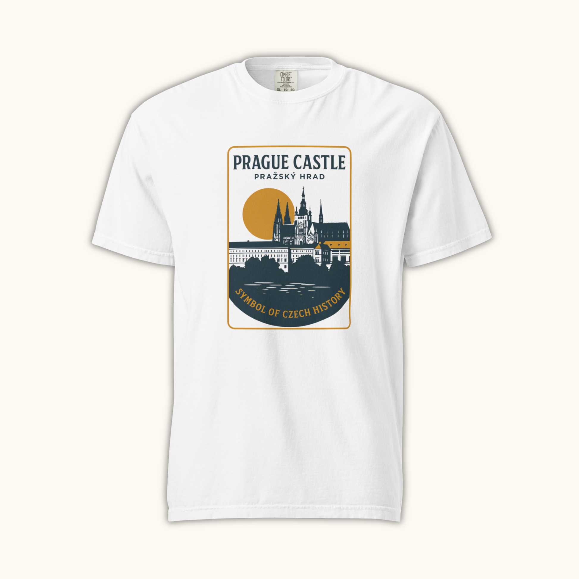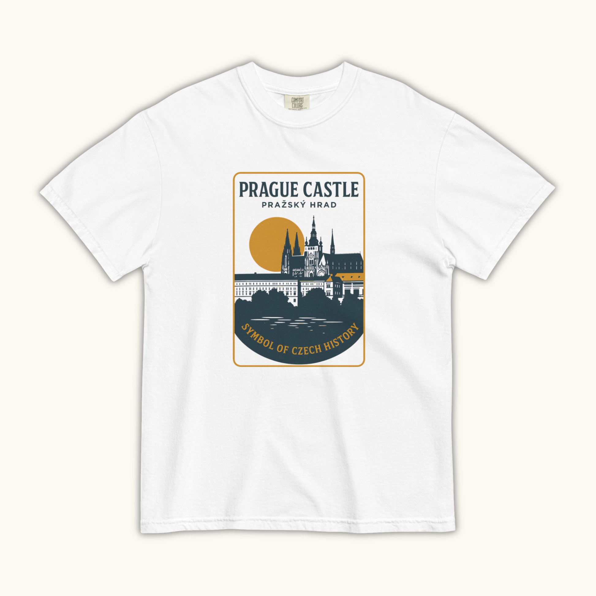 Celebrate one of Europe’s most iconic landmarks with the “Prague Castle – Symbol of Czech History” unisex t-shirt. Featuring a refined illustration of Pražský hrad at sunset, this design captures the grandeur of the world’s largest ancient castle and the historic heart of the Czech Republic. Elegant, timeless, and culturally rich, it reflects the spirit of Prague’s architectural and historical heritage.