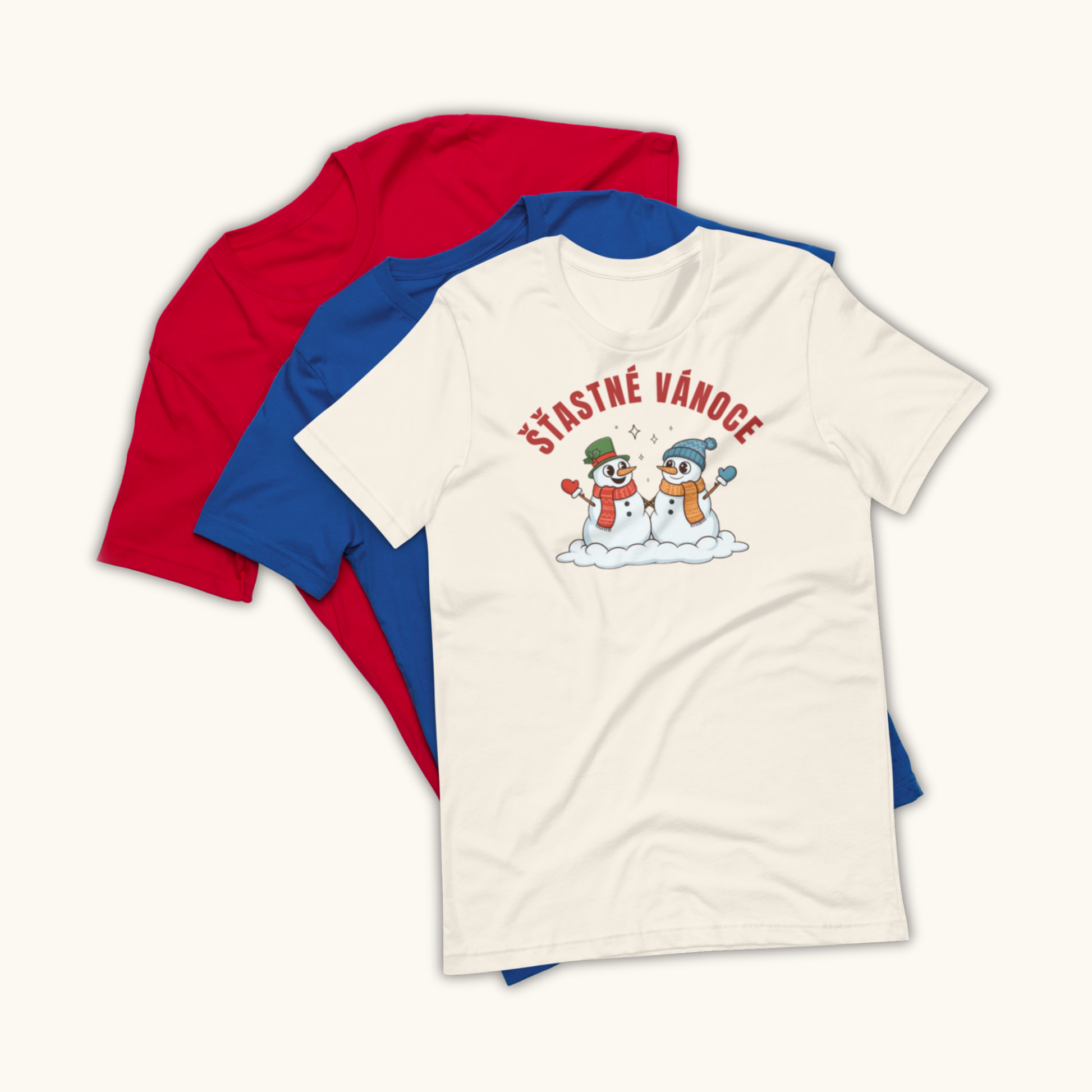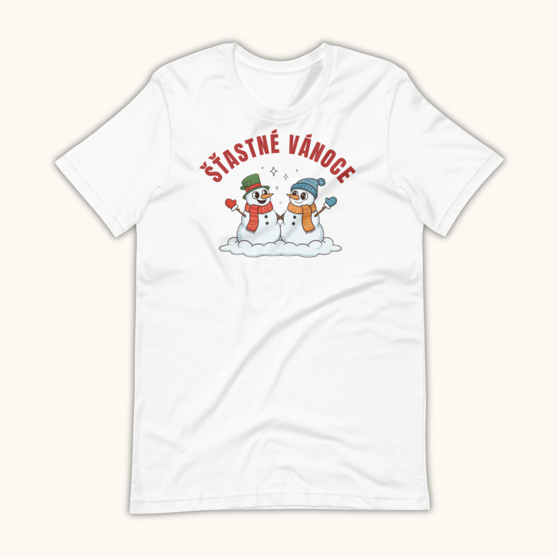 Celebrate the joy and cheer of Czech Christmas with the “Šťastné Vánoce Snowmen” women’s t-shirt. This playful design features two adorable snowmen celebrating together, complete with winter hats, colorful scarves, and a snowy base. The friendly illustration and Czech holiday greeting create a warm, festive, and charming winter feel.
