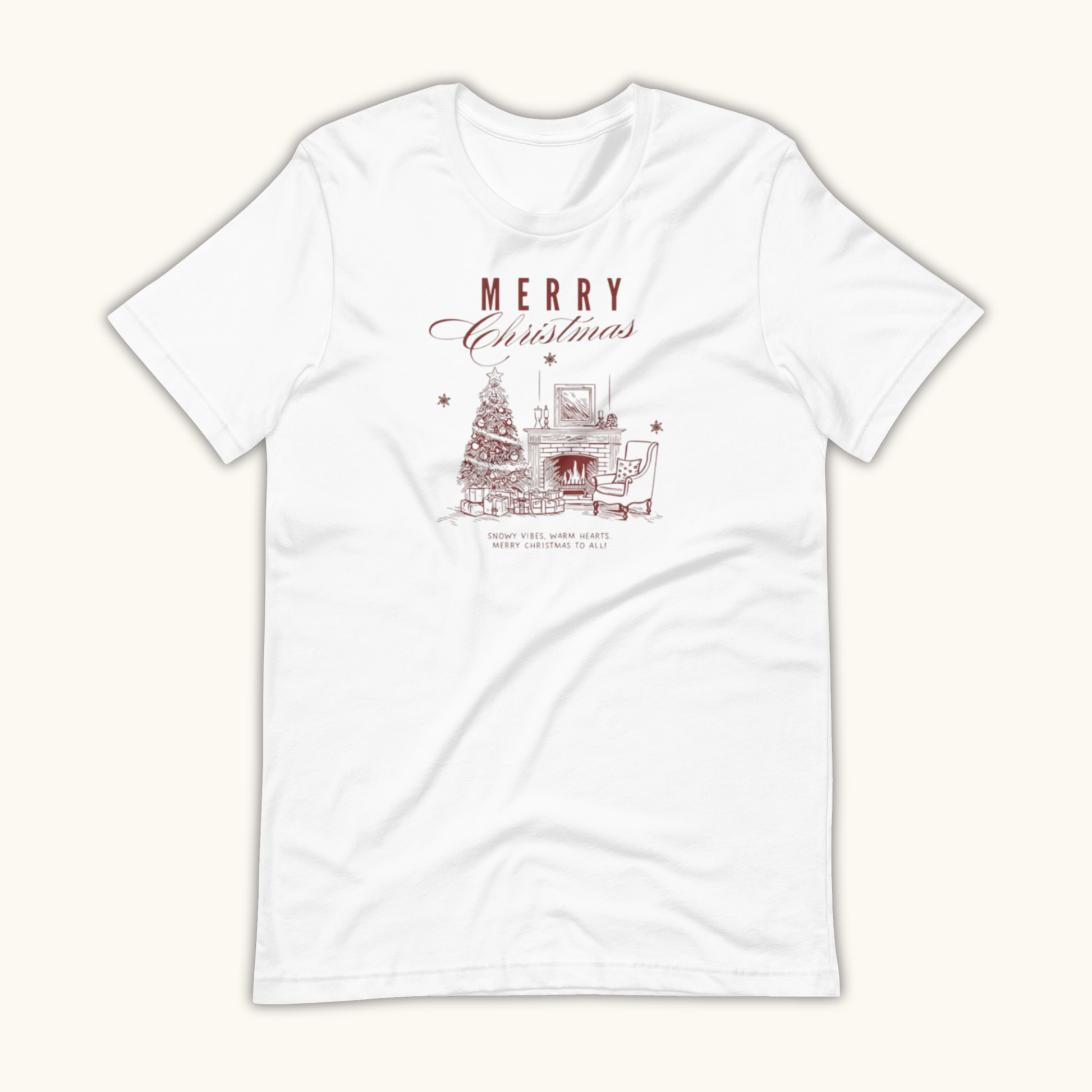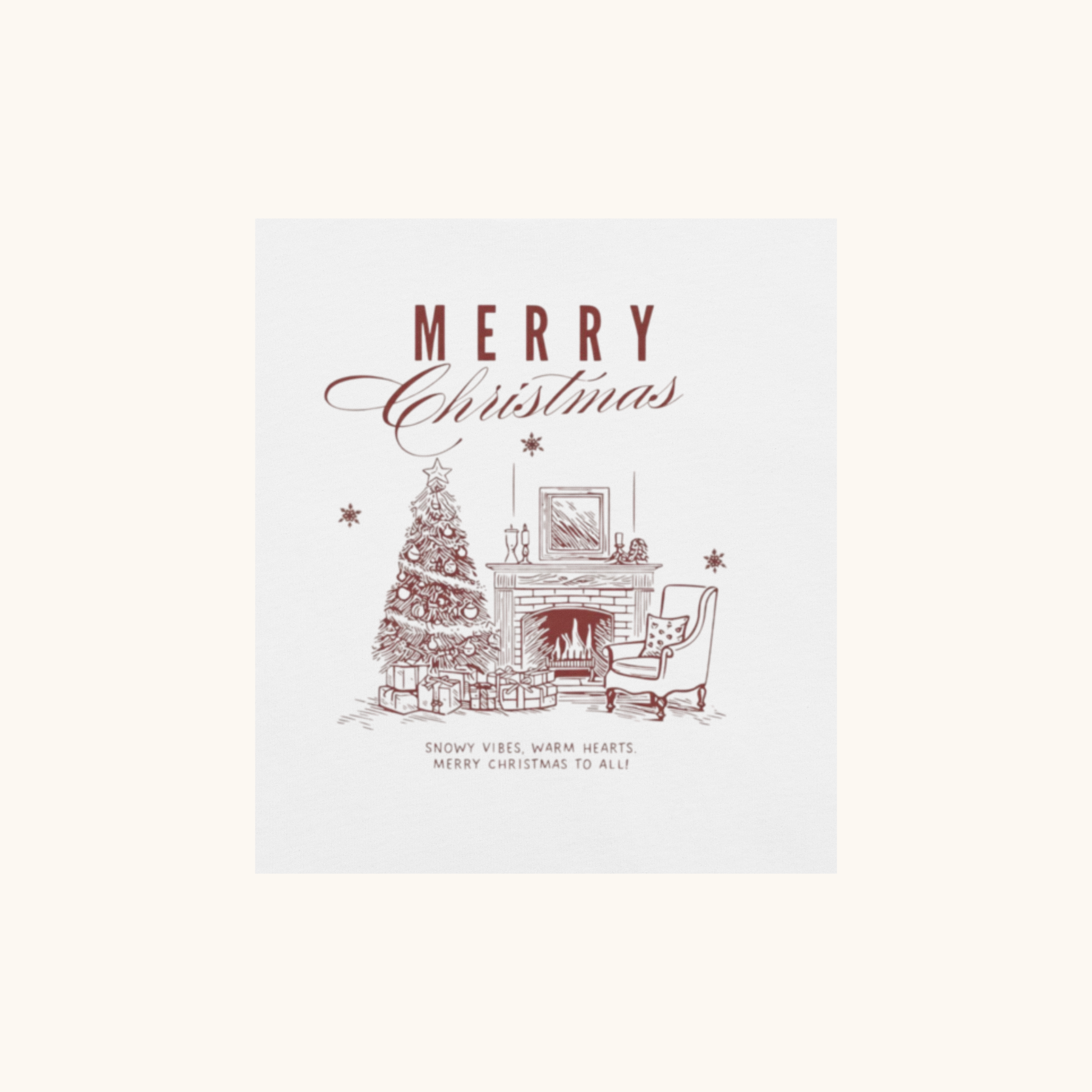 Celebrate the warmth and elegance of the holiday season with the “Vintage Merry Christmas Fireplace” women’s t-shirt. Featuring a beautifully illustrated Christmas tree, a glowing fireplace, and a cozy reading chair, this design captures the charm of classic holiday decor. Its refined typography and nostalgic sketch style create a timeless Christmas aesthetic.