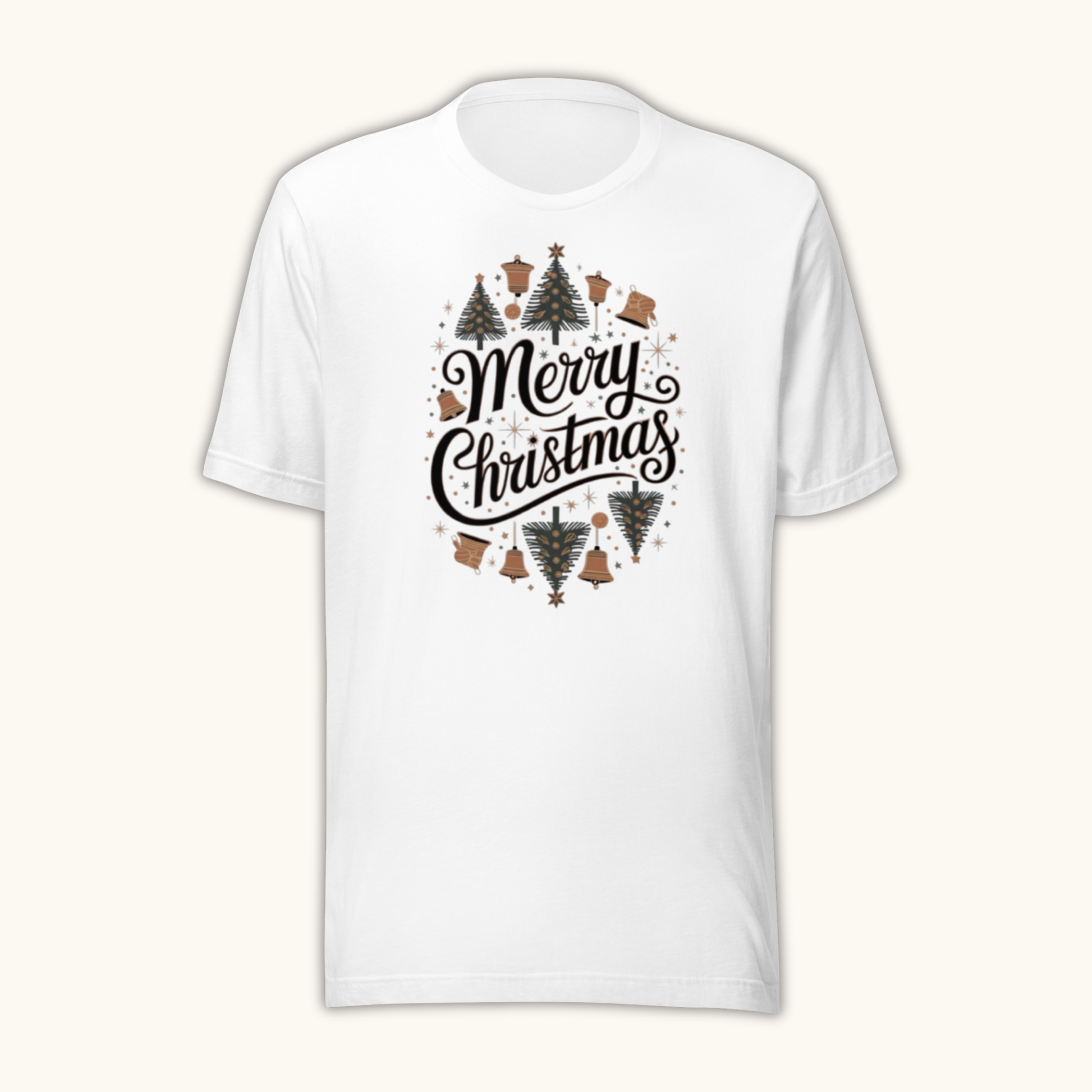 Bring classic holiday charm to your wardrobe with the “Vintage Merry Christmas Wreath” women’s t-shirt. Featuring a beautifully arranged circle of Christmas trees, bells, stars, and artistic holiday elements, this design centers around an elegant “Merry Christmas” hand-lettering. Its warm vintage tones make it perfect for a cozy and stylish Christmas look.